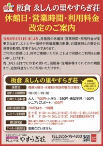休館日・営業時間・利用料金改定のお知らせ