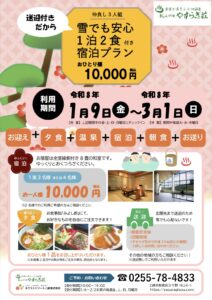 1泊2食と玄関先までの送迎つきで、おひとり様1万円!